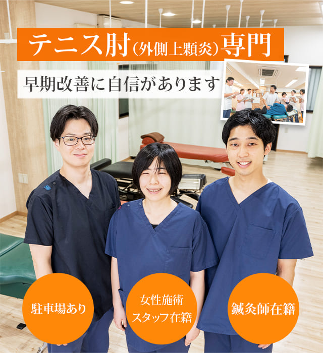 私たちが、つらいテニス肘を改善に導きます。